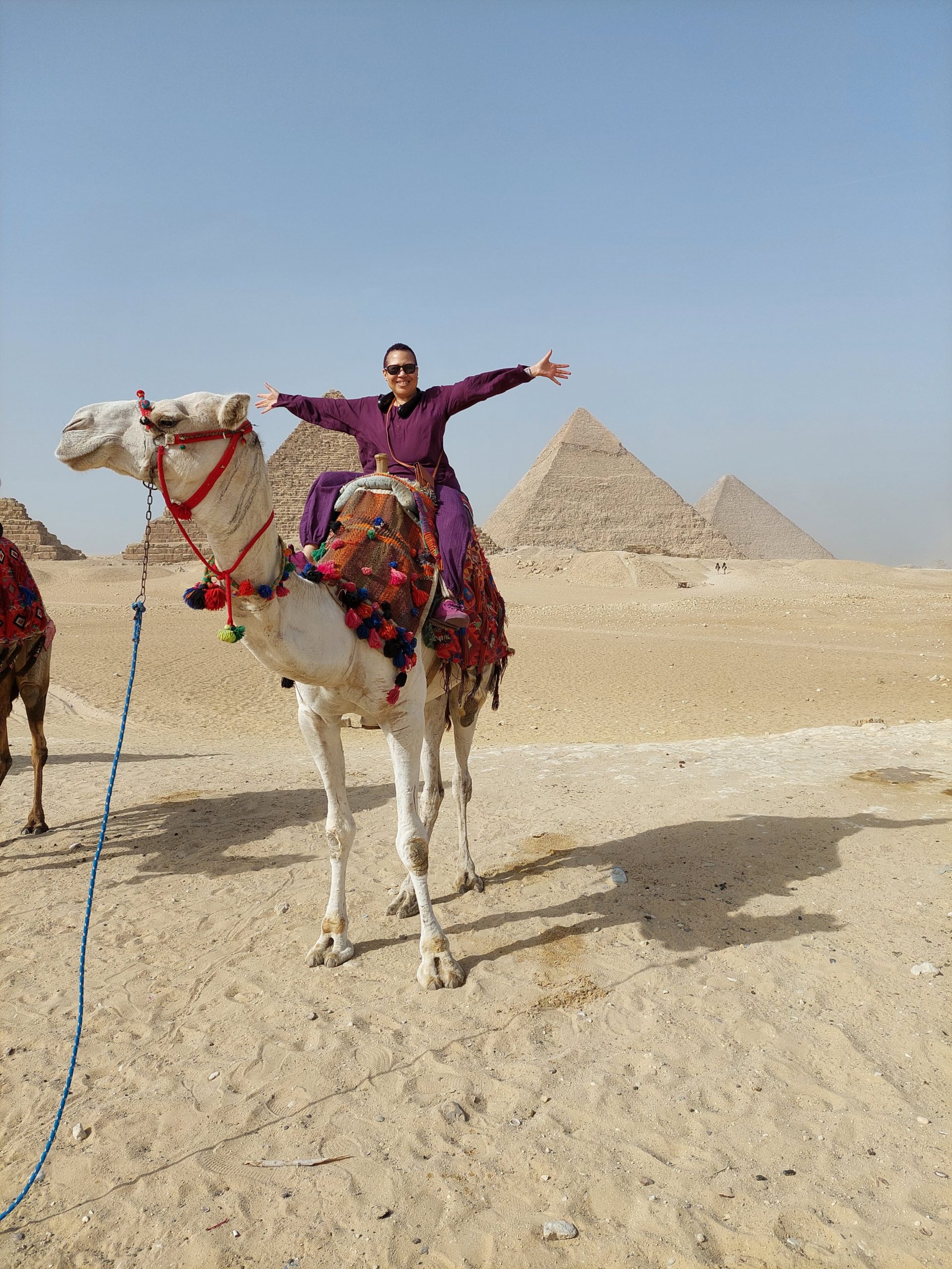 There was an almost mystical vibe in the air, charged with a sense of awakening, a heightened sense of awareness – self-awareness on a cellular level. Lunch at the nearby 9 Pyramids Lounge offered a fantastic view of the pyramids and a splendid presentation of local cuisine and delicacies. However, I recommend a camel ride around the perimeter to feel the authenticity of your experience.
